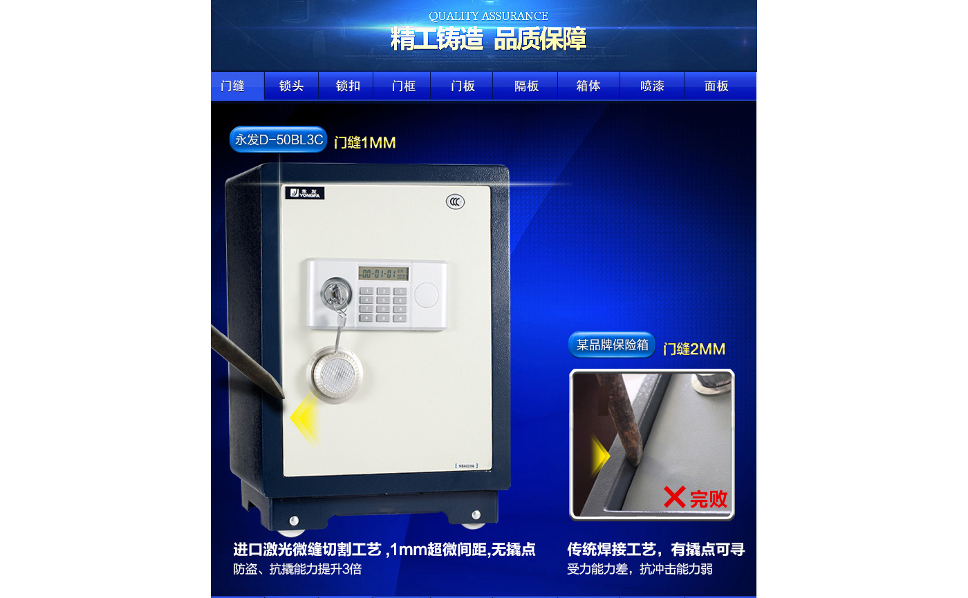 永發經典電子系列3C認證保險箱D-50BL3C尺寸說明:570高*390寬*330深mm(含底座) 重量:62kg
