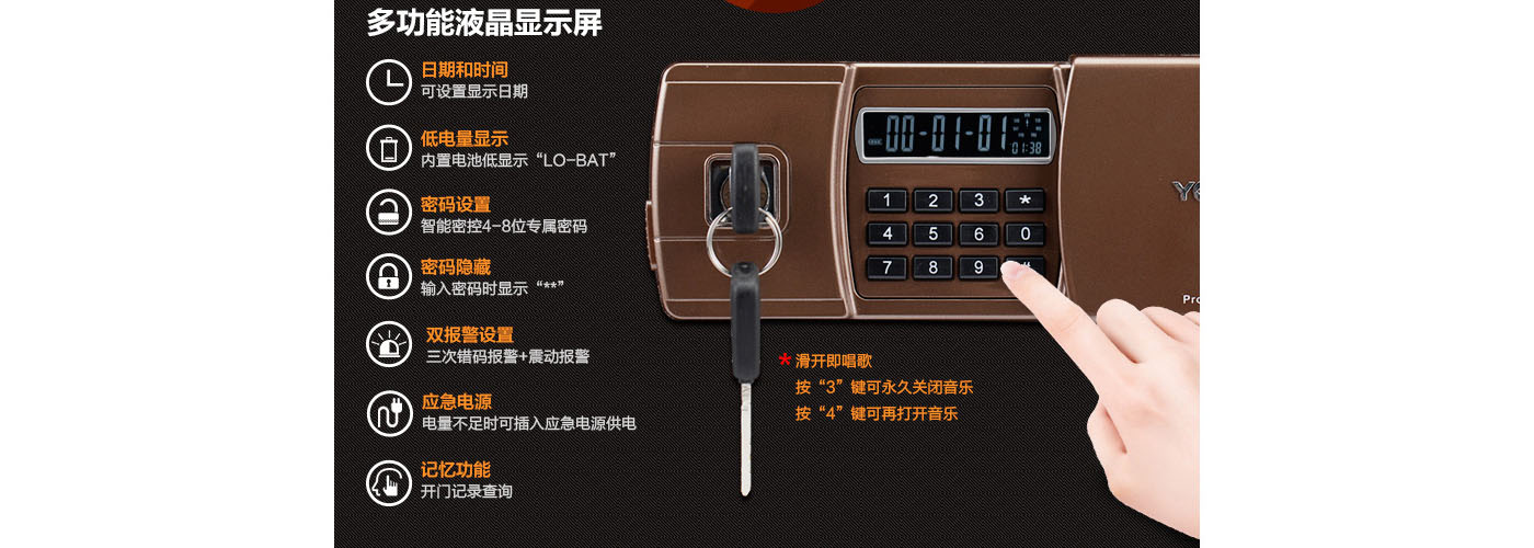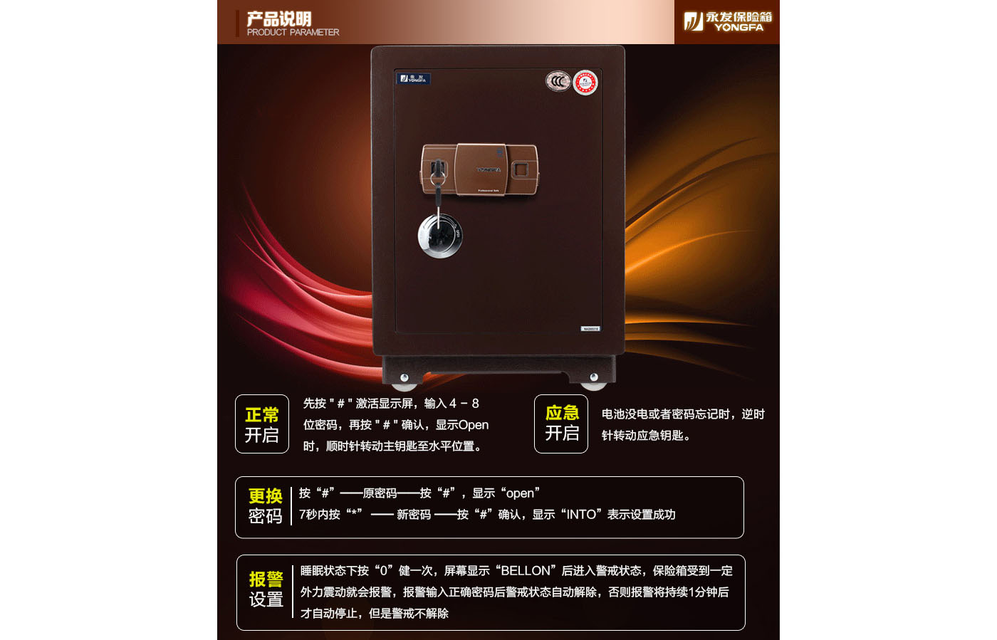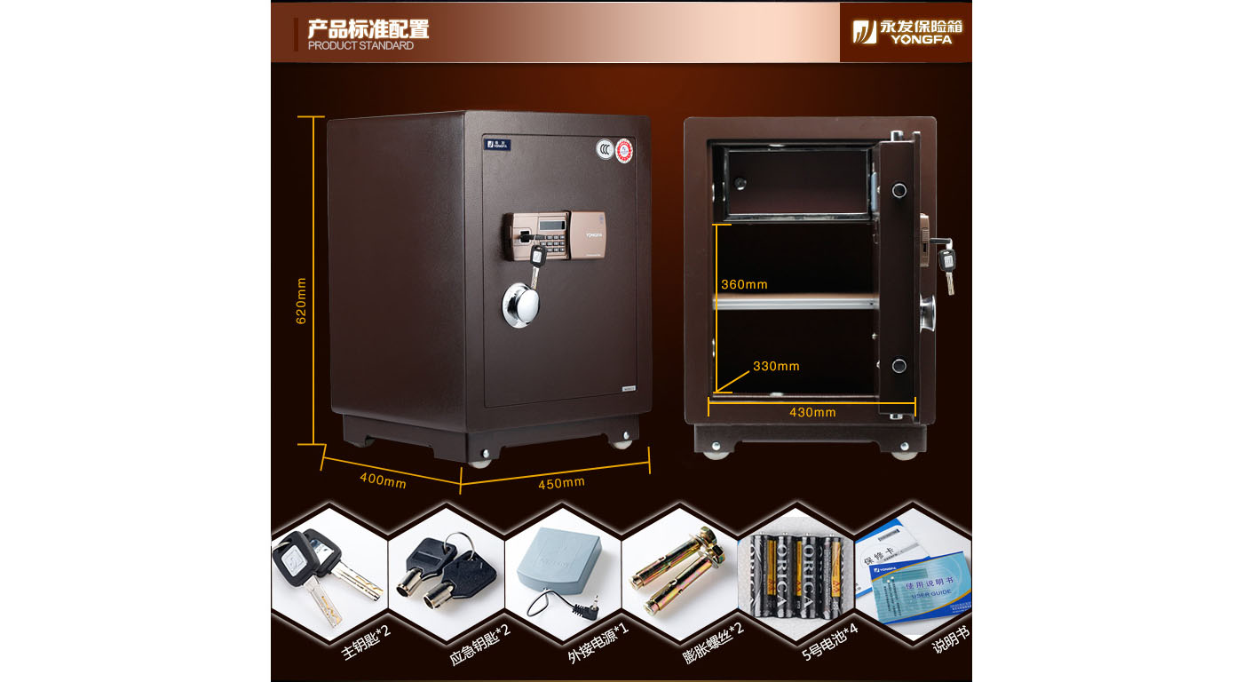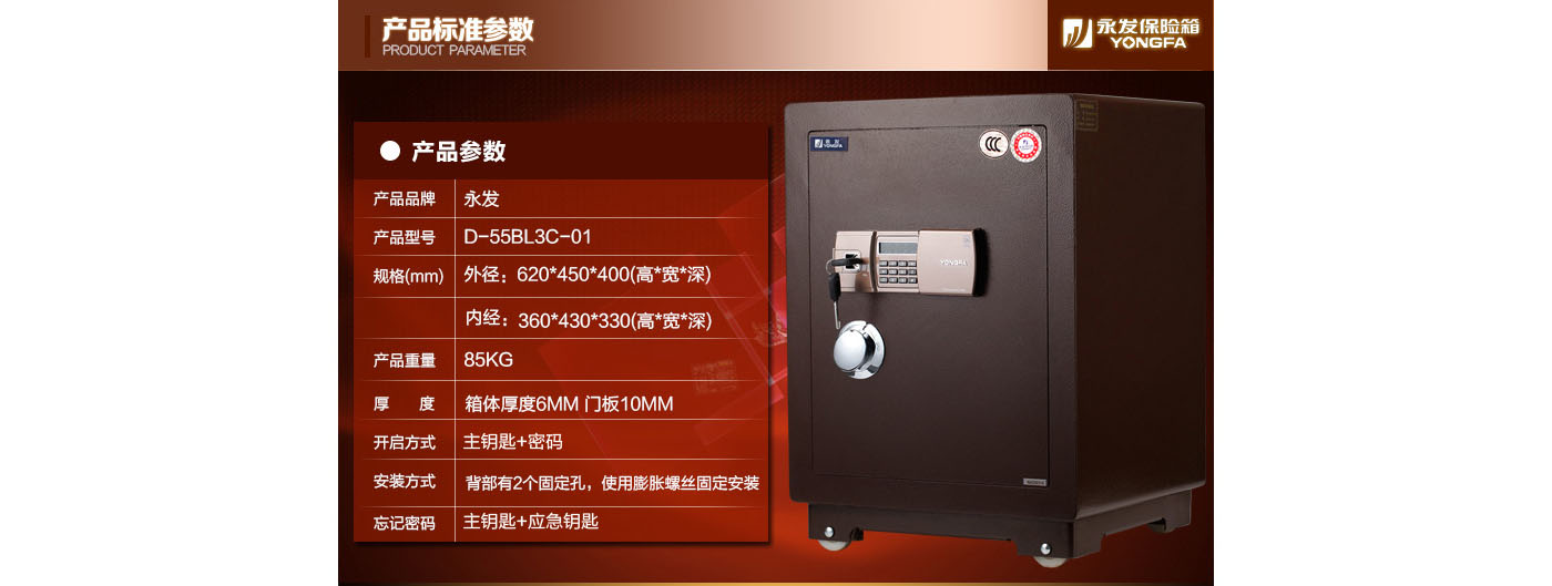 永發領尊系列3C認證電子式保險柜55BL3C-01尺寸說明:620高*450寬*400深mm(含底座) 重量:85kg