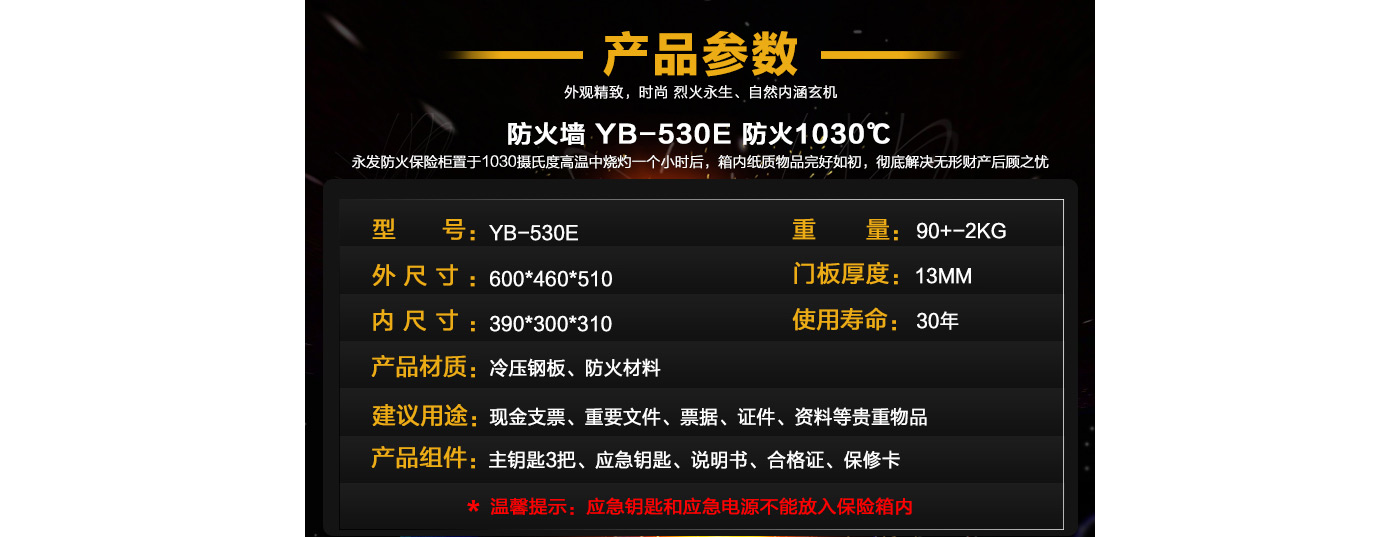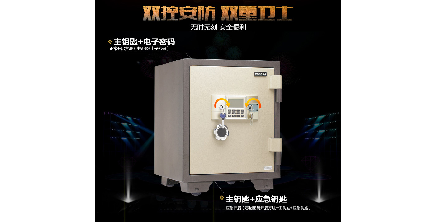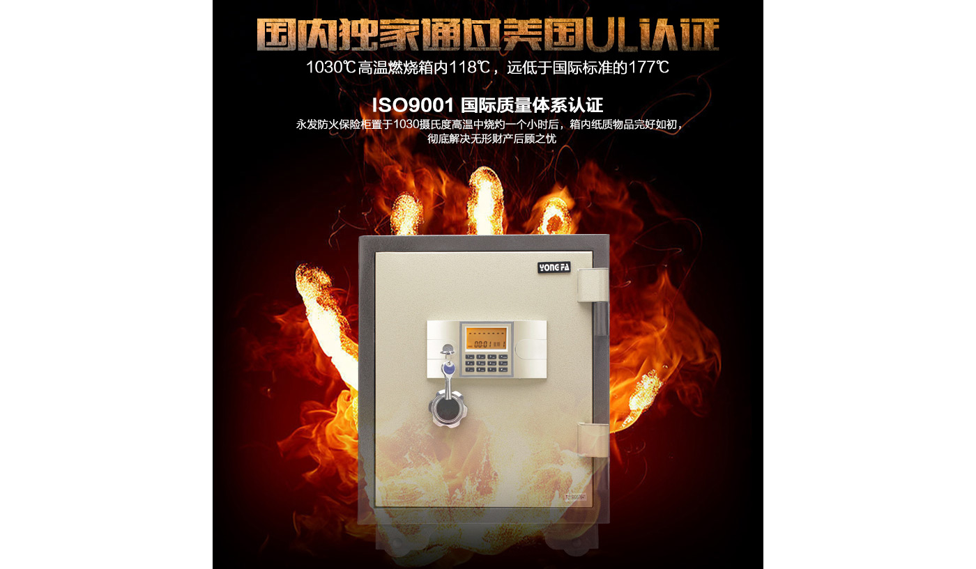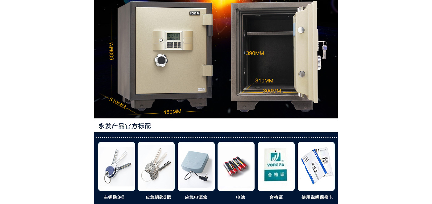 永發電子防火柜YB-530E尺寸說明:600高*460寬*510深mm(含底座) 重量:90kg