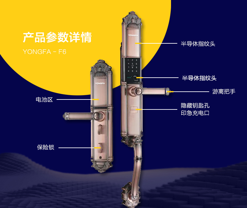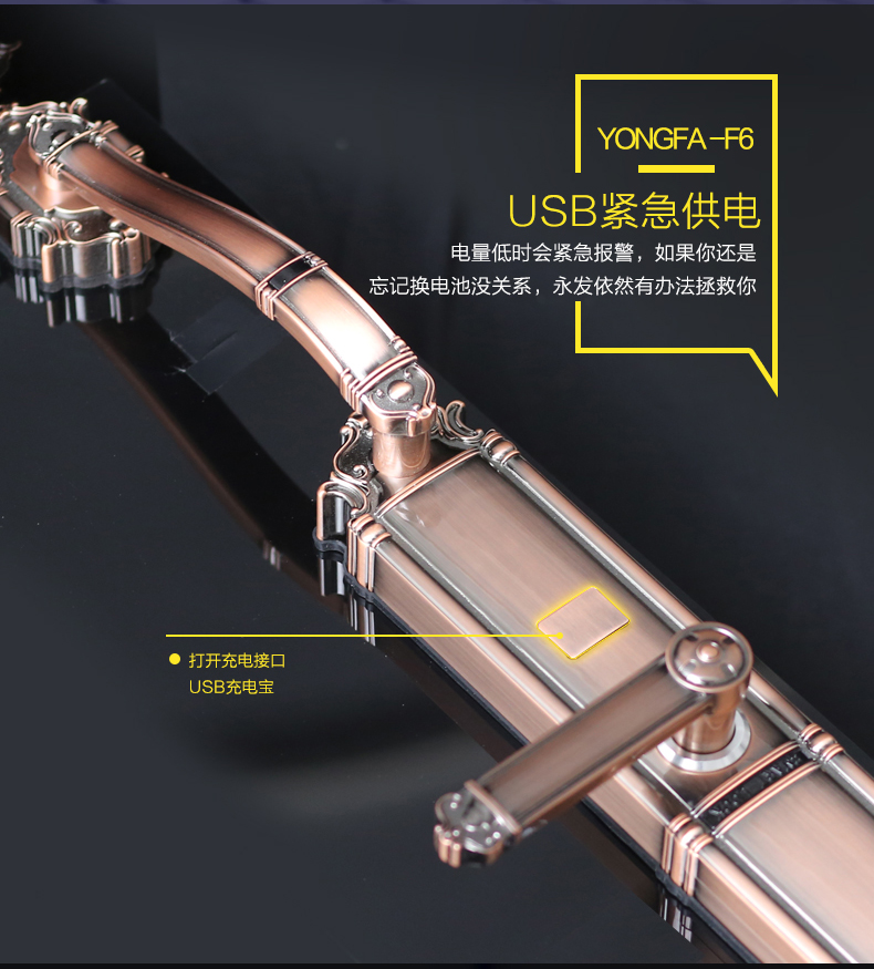 永發(YONGFA) 智能防盜門指紋鎖F6尺寸說明:
